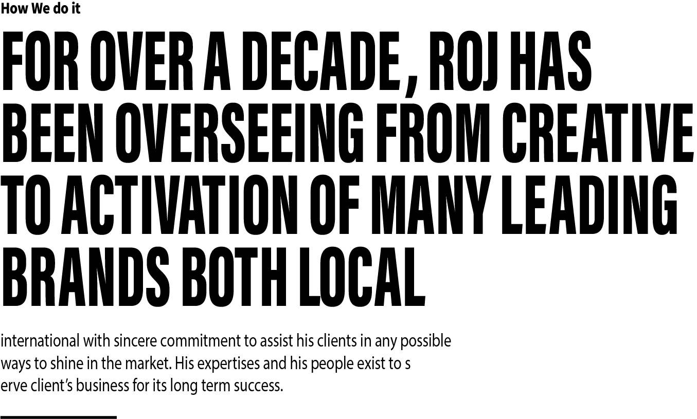 About Home About Work Service Contact Menu Home About Work Service Contact X THE EXPERIENCE OF OVER 10 YEARS MAKES CUSTOMERS TRUST US TO TAKE CARE. Our Services Strategy Brand strategyCommunications strategyContent and social strategyResearch, insight & reporting Brand strategy Communications strategy Content and social strategy Research, insight & reporting Menu Brand strategy Communications strategy Content and social strategy Research, insight & reporting Advertising Above the line campaignsIntegrated 360 campaignsShopper/In-store campaigns Above the line campaigns Integrated 360 campaigns Shopper/In-store campaigns Menu Above the line campaigns Integrated 360 campaigns Shopper/In-store campaigns Branding & Design Above the line campaignsIntegrated 360 campaignsShopper/In-store campaigns Above the line campaigns Integrated 360 campaigns Shopper/In-store campaigns Menu Above the line campaigns Integrated 360 campaigns Shopper/In-store campaigns Social & Content Social strategySocial campaignsContent creative & productionCommunity managementSocial reporting Social strategy Social campaigns Content creative & production Community management Social reporting Menu Social strategy Social campaigns Content creative & production Community management Social reporting Influencer & Outreach Influencer recruitmentInfluencer activationsSocial community growth Influencer recruitment Influencer activations Social community growth Menu Influencer recruitment Influencer activations Social community growth Studio & Production Illustration and animation3D renderingFilm and photographyPost-productionGraphic and animated content Illustration and animation 3D rendering Film and photography Post-production Graphic and animated content Menu Illustration and animation 3D rendering Film and photography Post-production Graphic and animated content ROJ AGENCY : Marketing, Advertising, Micro influencer, Video Production, Organizer One Stop Service Thailand [email protected]093-789-8991250/133 baa klang muangchokchai 4 rd. ladphrao Bangkok 10230© 2022 Rojagency.com All Right Reserved. Want to be the smartest person in your office? Send Follow us Facebook Youtube Instagram